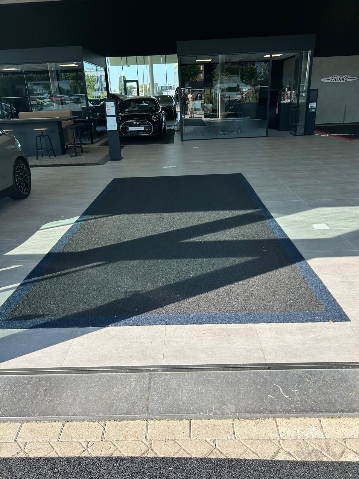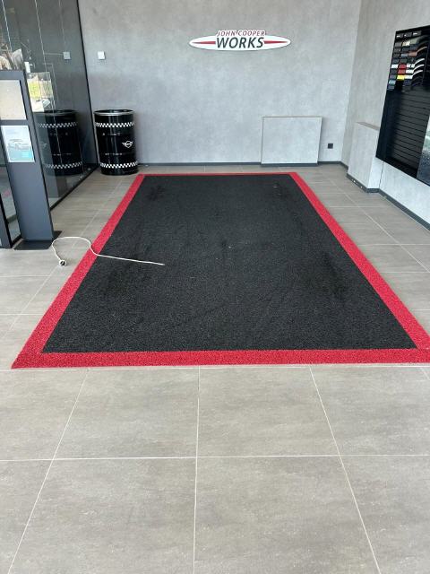 Spaghetti mat BMW Nijmegen Spaghetti mat op maat gemaakt met bies naar keuze.Dit ter ondergrond ten behoeve van tentoonstelling auto's